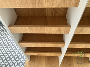 Dieses Projekt zeigt, wie sich auch eine nur 500 mm tiefe Nische optimal nutzen lässt – mit fünf Schubladen, einer vorgezogenen Eichen-Sitzbank, flächenbündigem Spiegel & U-Garderobenstange für Jacken.