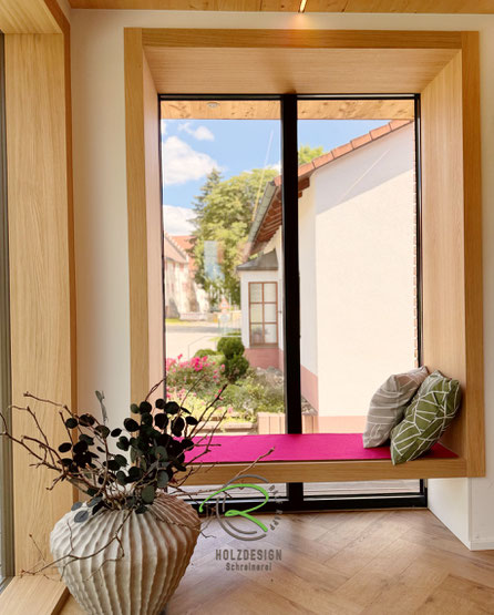 Wir von Schreinerei Holzdesign Ralf Rapp in Geisingen plant & fertigt solche individuellen Fenster-Sitzlösungen – ob im Altbau, Neubau oder Haus in Ständerbauweise.
